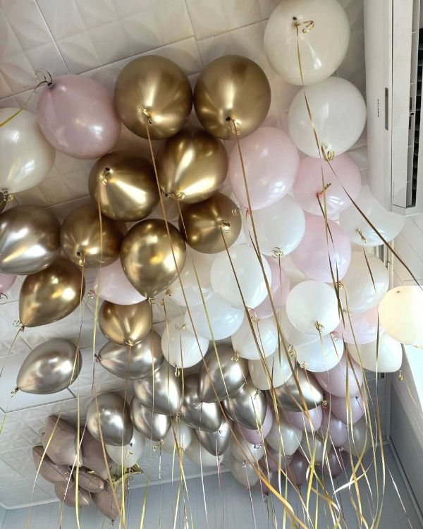 Вы планируете девичник и хотите добавить мечтательный штрих в оформление? Не смотрите дальше воздушных шаров! Парящие шары могут создать праздничную атмосферу, превратив комнату в волшебное королевство. Одно только представление о такой сложной композиции разноцветных шаров, украшающих поверхность потолка, обязательно вызовет улыбку на лицах ваших гостей. Добавьте волну интриги и стильности в свой декор с помощью уникальных декораций с использованием воздушных шаров.