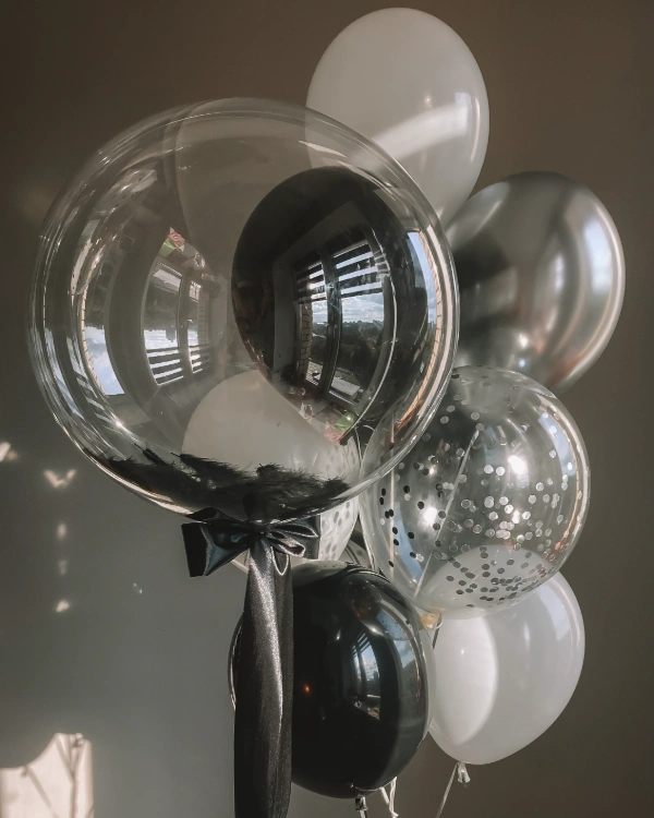 Шары с глиттером или конфетти: Внутри шара находится блестящее наполнение.